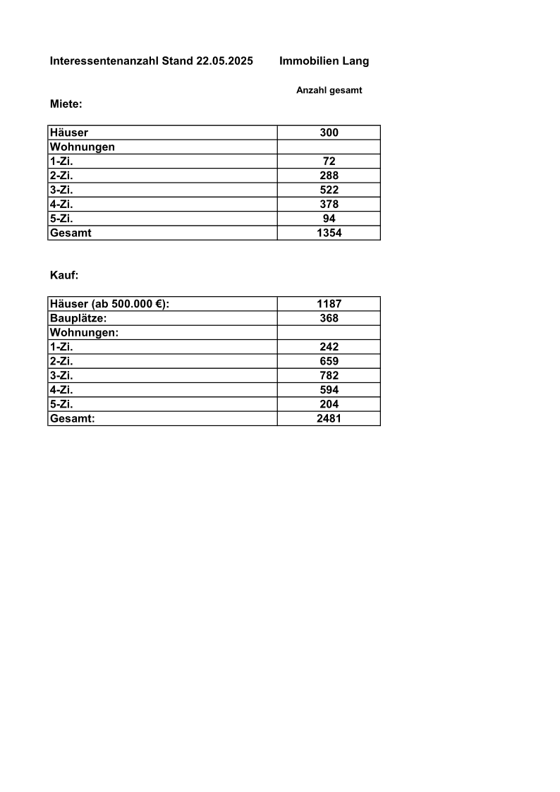 Kaufgesuch Wohnungen: